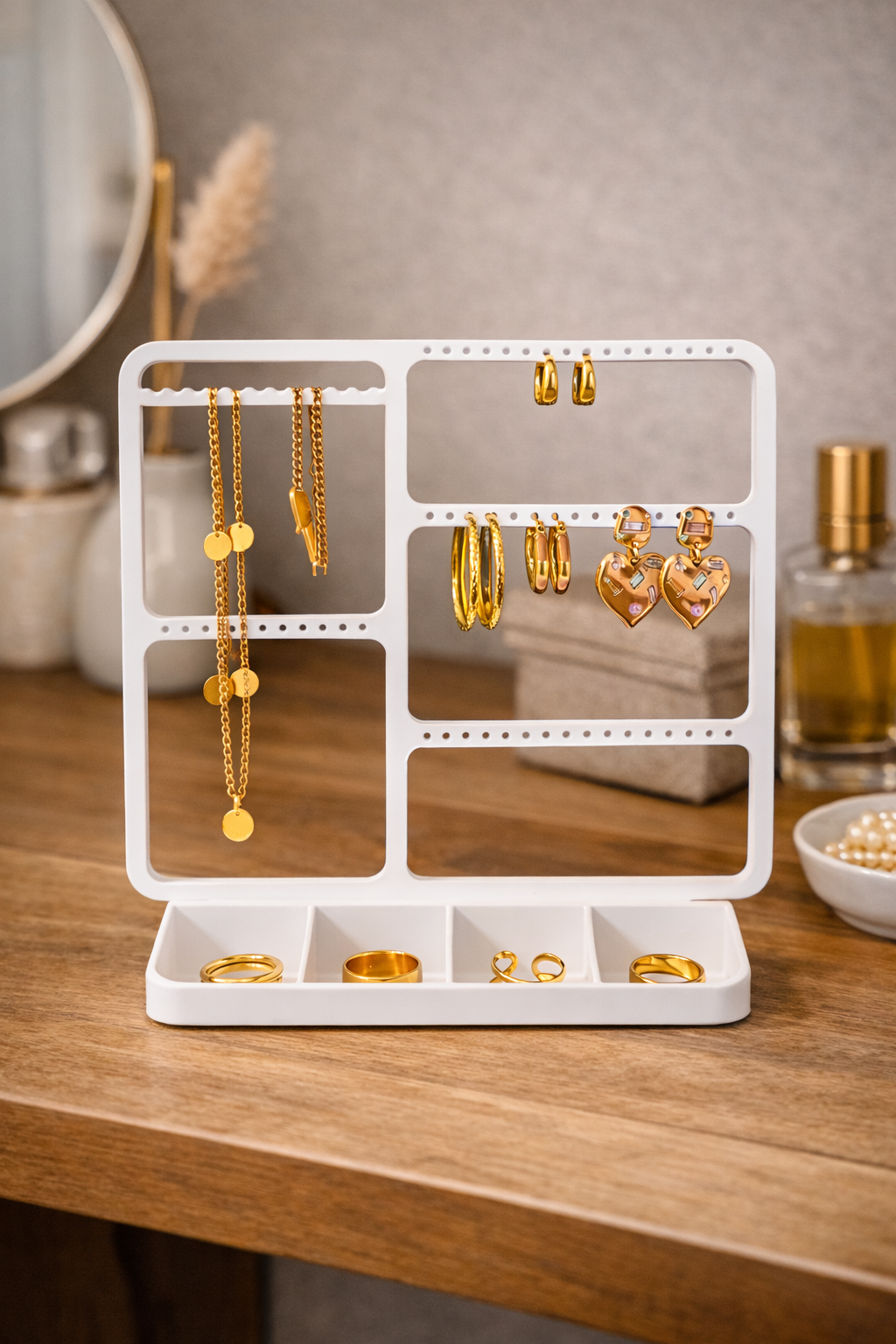 Mantenha brincos, anéis, colares e pulseiras sempre organizados com este organizador de joias moderno e funcional.