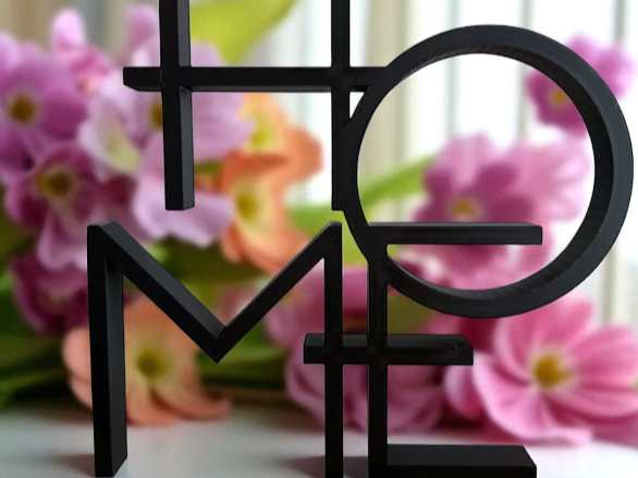 Decore qualquer cantinho com esta placa elegante em 3D com a palavra HOME. Ideal para prateleiras, mesas, nichos ou como presente especial, ela dá um toque acolhedor e moderno ao ambiente.