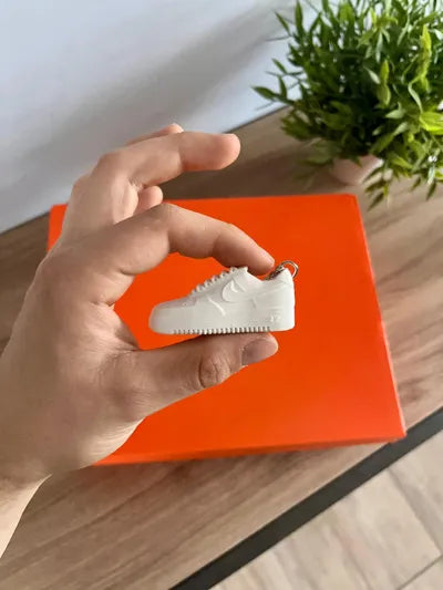 Este porta-chaves inspirado no Nike Air Force branco é perfeito para quem ama sneakers e quer um detalhe estiloso nas chaves, mochila ou mala.